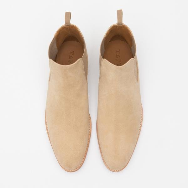 Meet the Jude Chelsea Boot in tonal elastic. This boot will grab you the attention you deserve. The upper is made of high-quality. Spanish suede tanned and milled in Almansa. Spain. The sole unit is double-stacked. full-grain leather with rubber inserts for added grip. durability. and comfort. This is a versatile boot. ranging from formal attire to casual wear. The inner leather lining is paired with a cushioned airbed for your foot to make sure you are stylish and comfortable.