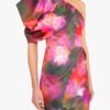 Make a statement in the Egan Gown. made from a printed stretch knit fabric. designed with a striking asymmetrical one-shoulder neckline and a bold puff sleeve. The tailored bodice features sculpted tucks at the waist. creating a contoured fit that flows into a sleek column silhouette. Finished with a hidden back zipper and fully lined for a smooth finish.