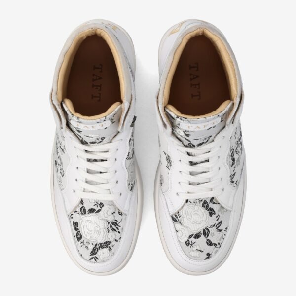 - UPPER: TAFT’s custom Eden Blanc cotton jacquard combined with Spanish Calfskin